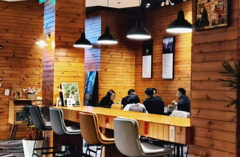 踏入店内,工业风装修与暖黄灯光相互映衬,年轻顾客举杯畅饮,服务员穿梭忙碌。热气腾腾的场面,让95后姑娘顾洋忍不住在社交平台上分享消费体验,“木质地板很有格调,整体氛围感也超棒。”