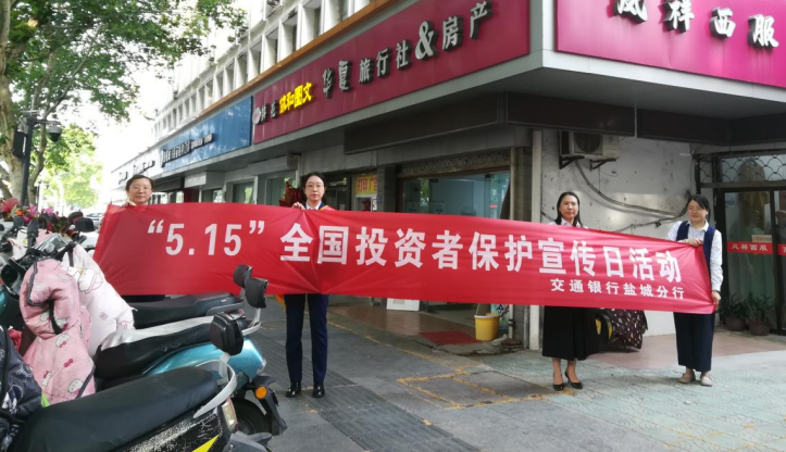 为进一步普及理性投资理财知识,帮助消费者掌握投资产品特点和相关风险,引导金融消费者结合自身需求,合理运用金融工具作出理财规划和投资决策,树立理性投资、价值投资观念。近日,交通银行盐城分行开展了“5·15全国投资者保护宣传日”系列活动。