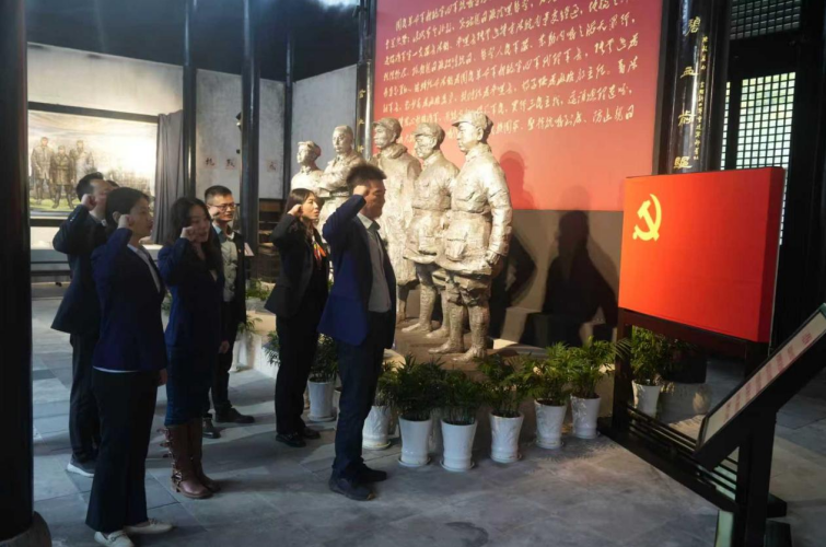 在庄严肃穆的新四军重建军部旧址,党员们通过参观历史陈列、瞻仰革命文物,沉浸式感悟了新四军在艰苦条件下坚持华中抗战的铁军精神。参观结束后,全体党员举行了庄严的“重温入党誓词”仪式,以铿锵誓言叩问初心使命,深切缅怀革命先辈。