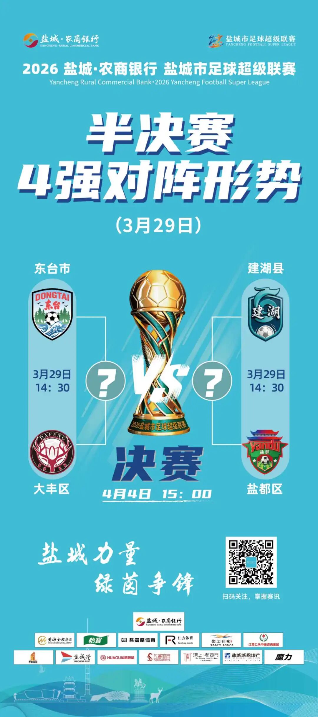 盐城足球超级联赛,四强对阵表出炉!