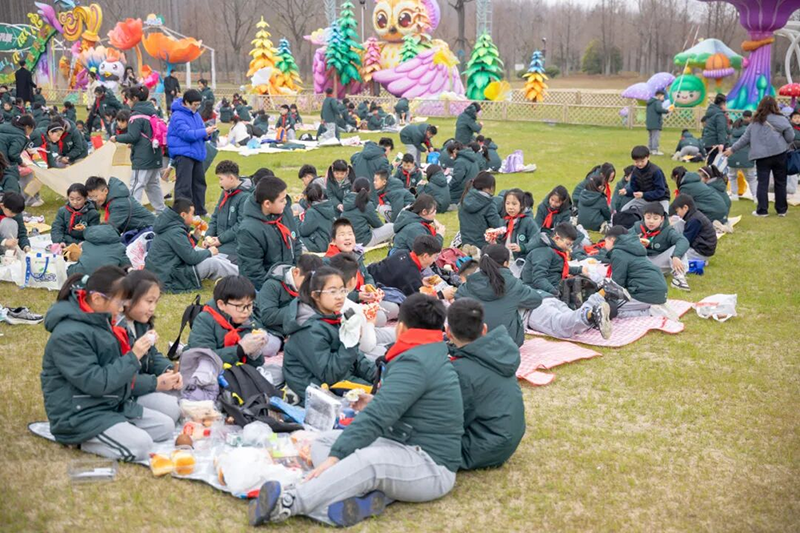 大家围坐成圈,分享着美食与趣事,欢声笑语在草坪上空飘荡。孩子们在自然中舒展身心,在同伴的陪伴中收获友谊。这场野餐不仅是春日的浪漫仪式,更让每一个人感受到集体出游的温暖,为春日研学增添了柔软的注脚。
