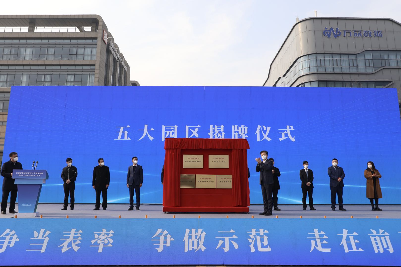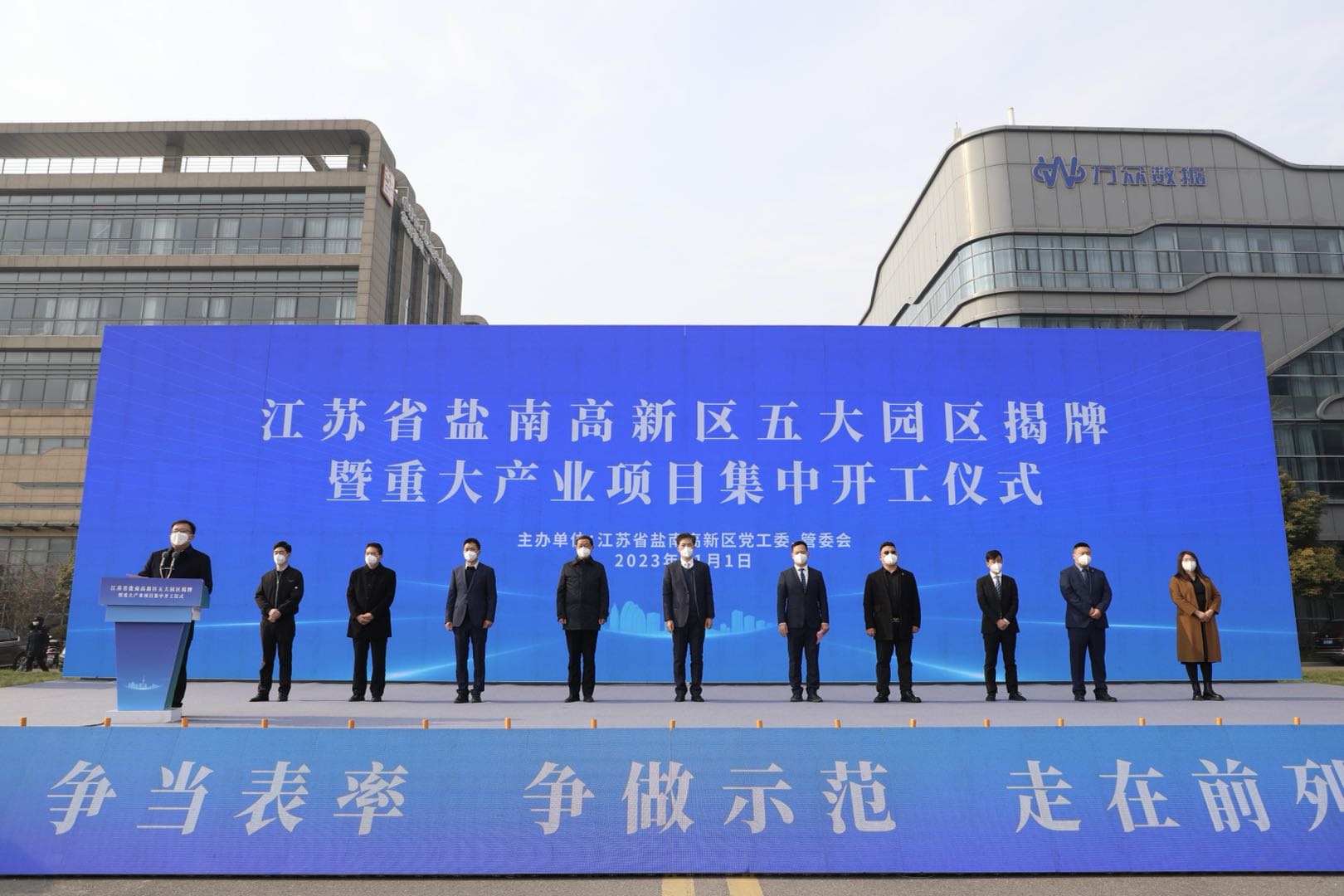 “新年第一天,我们举行五大园区揭牌和重大项目集中开工活动,以产业突破开启全年序幕,以项目开工吹响奋进号角。”上午10点多,盐南高新区党工委书记、管委会主任唐高明的致辞,拉开了五大园区揭牌暨重大产业项目集中开工活动帷幕。
