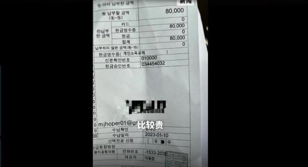 tina称自己在一名军人的陪同下前往核酸检验点,并自费8万韩元(约合人民币430元)做了核酸检测。