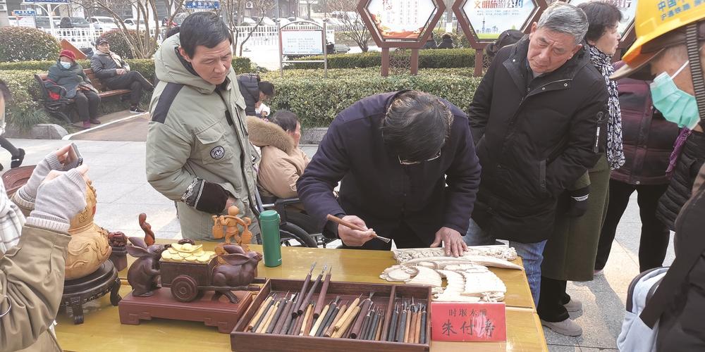 “非遗”传承人现场亮绝活,吸引了很多居民观看。