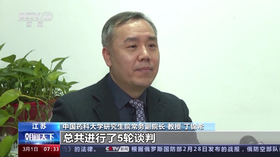 中国药科大学研究生院常务副院长 教授 丁锦希:就是说如果这个药进了医保,我们可以在药店买得到,医院处方开出来到药店买,同样可以用医保的统筹基金来报销,而且是患者他只掏他自己付钱的那一部分,剩下来的他不管,由药店跟医保结算,这是非常便民的一个政策。