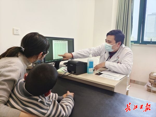 在武汉儿童医院儿童保健科,家长带着孩子在候诊。记者王春岚 摄