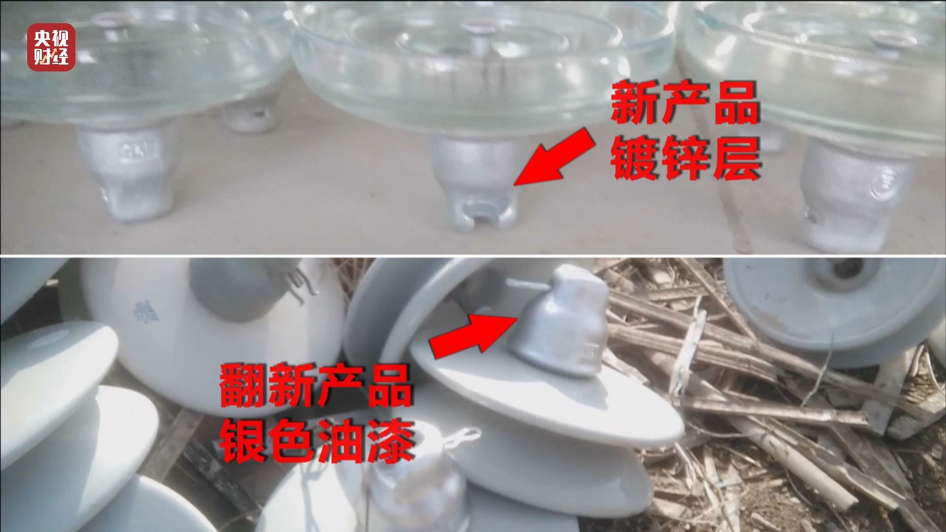 绝缘子的金属附件有银色的镀锌层,主要起防腐蚀的作用,绝缘子相关国家标准及行业标准,对绝缘子的锌层厚度有明确规定。但赵经理坦承,旧的绝缘子镀锌层厚度无法达到国家标准,他们的翻新只是简单地清洗盘体表面,给已经生锈的铁头喷上银色的油漆,这样,看起来跟新的镀锌层就没有太大区别。