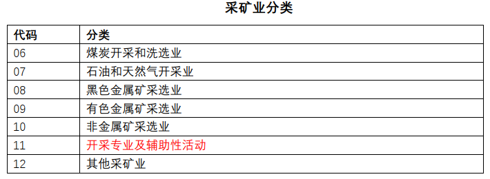 很多人可能不熟悉,“工业”其实是一个较大的范畴,按《国民经济行业分类》(GB/T4754-2017)标准划分,其下辖“采矿业”“制造业”“电力、热力、燃气及水的生产和供应业”三方面共计41个工业大类。除了我们较为熟悉的“制造业”,另外两者同样非常重要,被称为制造业的“血液”和“粮食”。其中,“开采专业及辅助性活动”就属于“采矿业”类别下的子类。