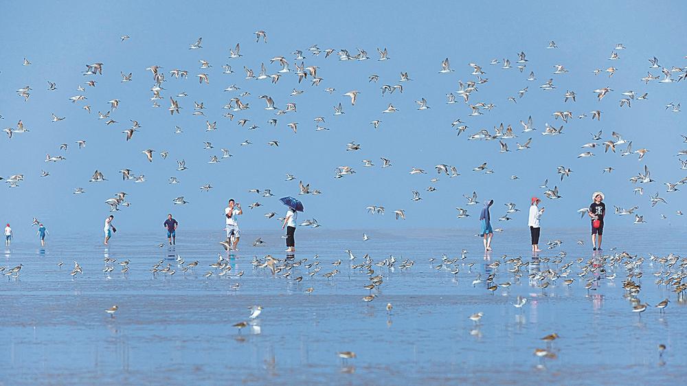 暮春时节,候鸟北归。盐城黄海湿地是“东亚—澳大利西亚”迁飞路线上数百万候鸟的停歇地,是世界上最大的丹顶鹤越冬地,被誉为“鸟类的天堂”。