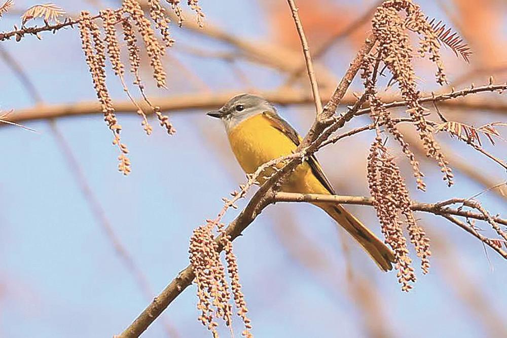 “树丛中的黄色山椒鸟就像野山椒一样,非常漂亮。”2022年12月底,市观鸟协会会员徐行在大丰区观察到灰喉山椒鸟。这是在盐城首次发现的新鸟种,也是江苏省的稀有鸟种。此前,他在市区观测记录了两种盐城新鸟种——文须雀、杂色山雀。