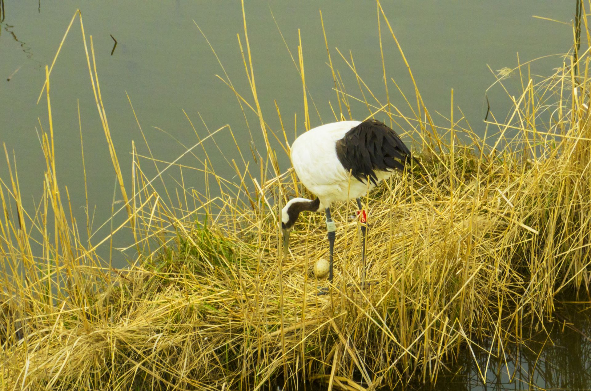 这对丹顶鹤于3月16日开始筑巢,3月18日产卵,4月19日成功孵化出小鹤,“我们在保护区核心区里面巡查时,陆续发现有4对丹顶鹤在繁殖,现在已产卵8枚,加上这只孵化出来的小鹤共为9枚卵。”陈国远说,“5对丹顶鹤产9枚卵,这是在越冬地丹顶鹤繁殖最多的一年。”