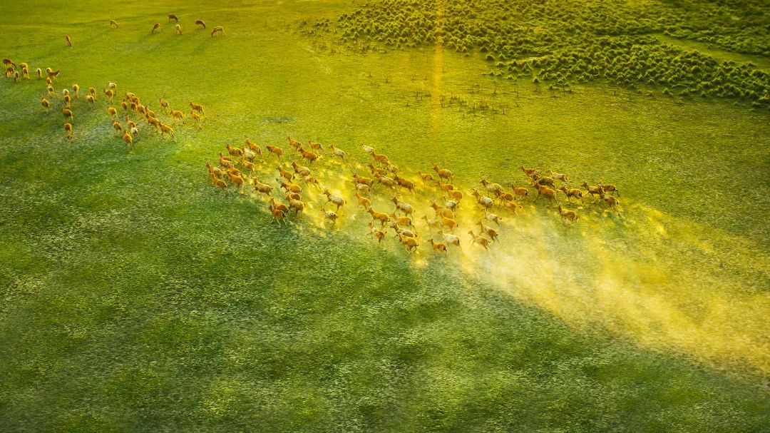 来到盐城,探寻生物多样性的神奇魅力,与“吉祥三宝”来一场约会是必不可少的:大丰麋鹿国家级自然保护区,每年6月,都会上演一年一度的“鹿王争霸”大赛;东台条子泥湿地景区,每年春秋两季,勺嘴鹬都会长途跋涉来此停歇觅食、补充能量;国家级珍禽自然保护区,每年冬天都会有千余只丹顶鹤迁徙到这里越冬。丹顶鹤翩翩起舞、麋鹿呦呦鸣叫、勺嘴鹬悠然信步,它们用行动选择了这片生态优良的地方,演绎着地球生灵的繁衍生息、勃勃生机。