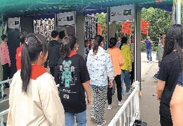 市初级中学考点组织初一学生对智能安检门进行测试。(学校供图)