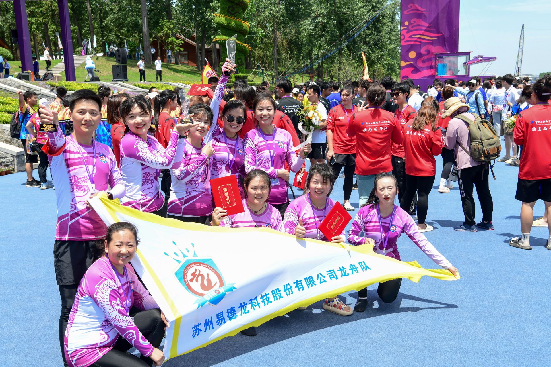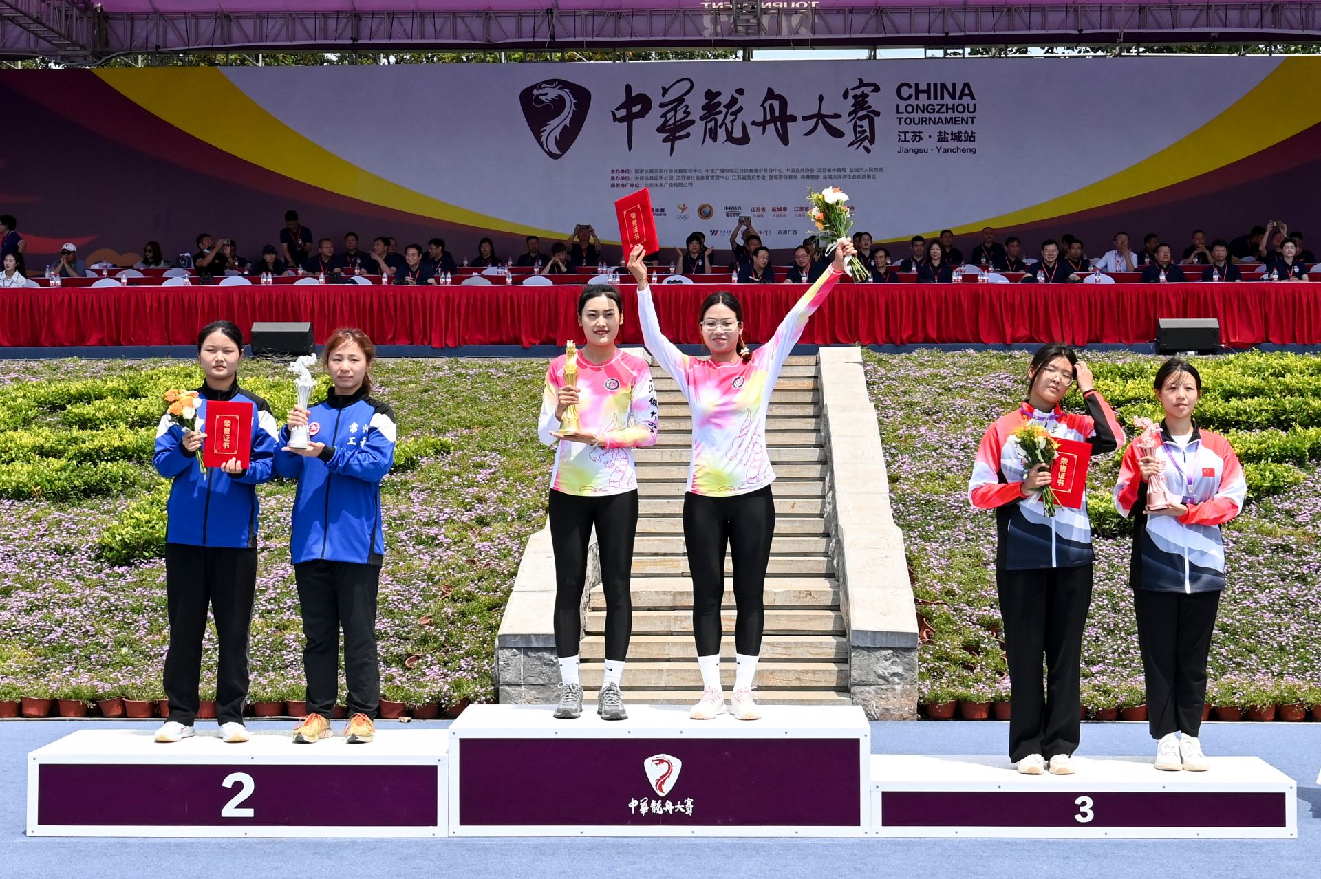 女子组别,东道主盐城大洋湾队士气如虹,以优异成绩力压群芳,夺得青少年女子组100米、500米直道赛决赛第一名。金华龙舟队获得职业女子100米、500米直道赛决赛第一名。浙江信达佳飞队获得职业女子200米直道赛决赛第一名。