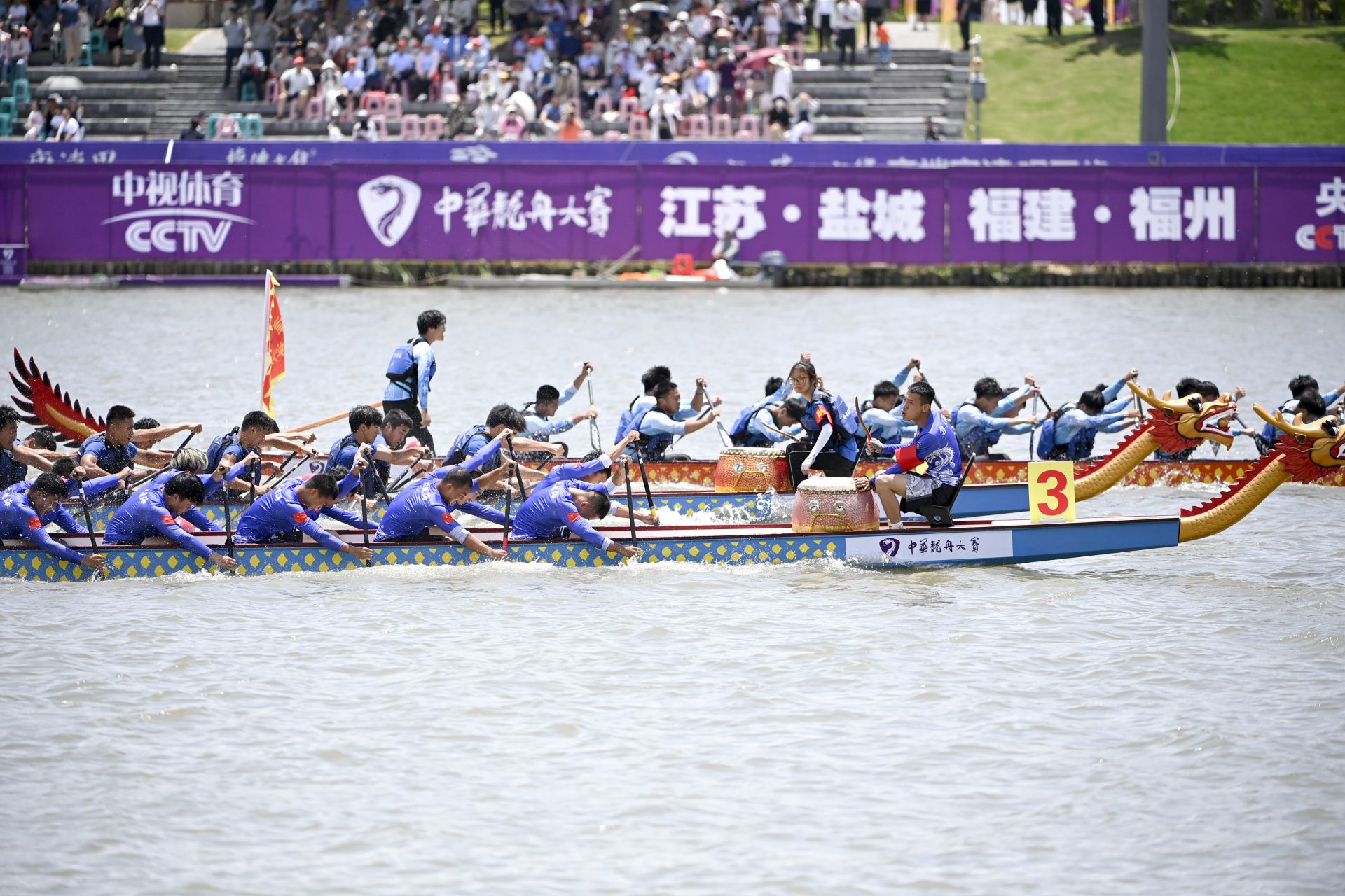 6月11日上午,随着职业男子100米直道赛决赛最后一支龙舟队驶过终点,为期两天的2023中华龙舟大赛(江苏·盐城站)在大洋湾生态旅游景区圆满收官。比赛期间,来自全国各地的38支龙舟队齐聚新洋港河,场面颇为壮观,上演了一场水上的“速度与激情”。