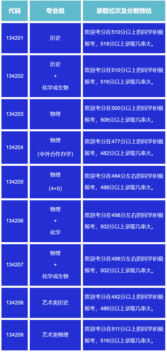 建议历史类21500名(541分左右)以上考生积极报考,录取概率较大;