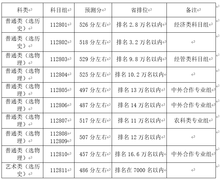 3.中外合作办学专业,历史等科目类预估516分以上(省排名3.2万)把握比较大;物理等科目类预估496分以上(省排名13万)。