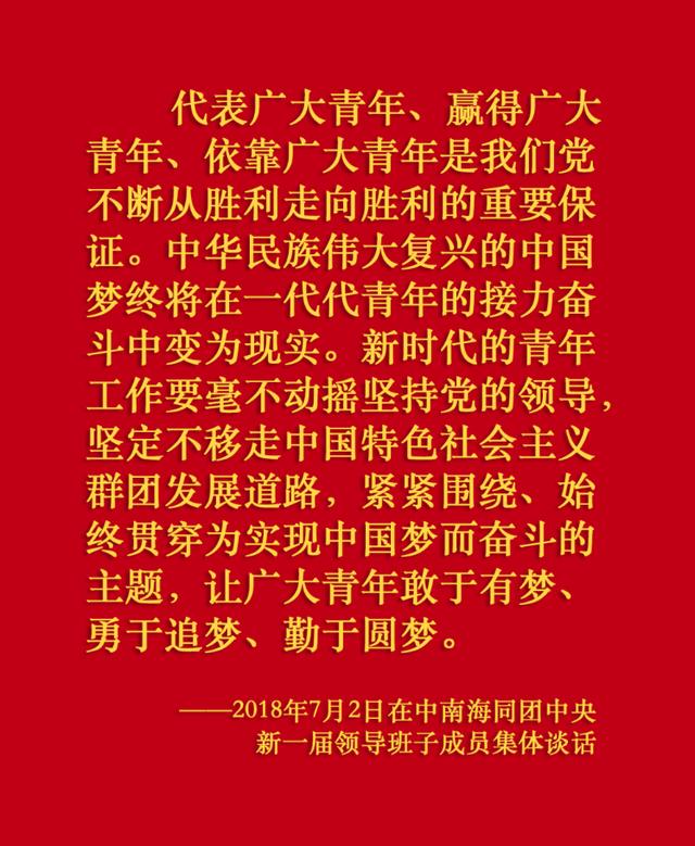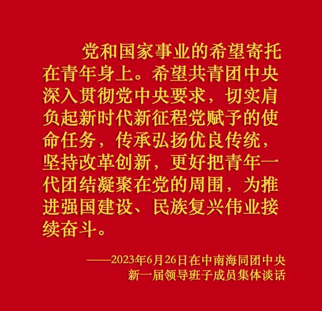6月26日,中共中央总书记、国家主席、中央军委主席习近平在中南海同团中央新一届领导班子成员集体谈话并发表重要讲话。