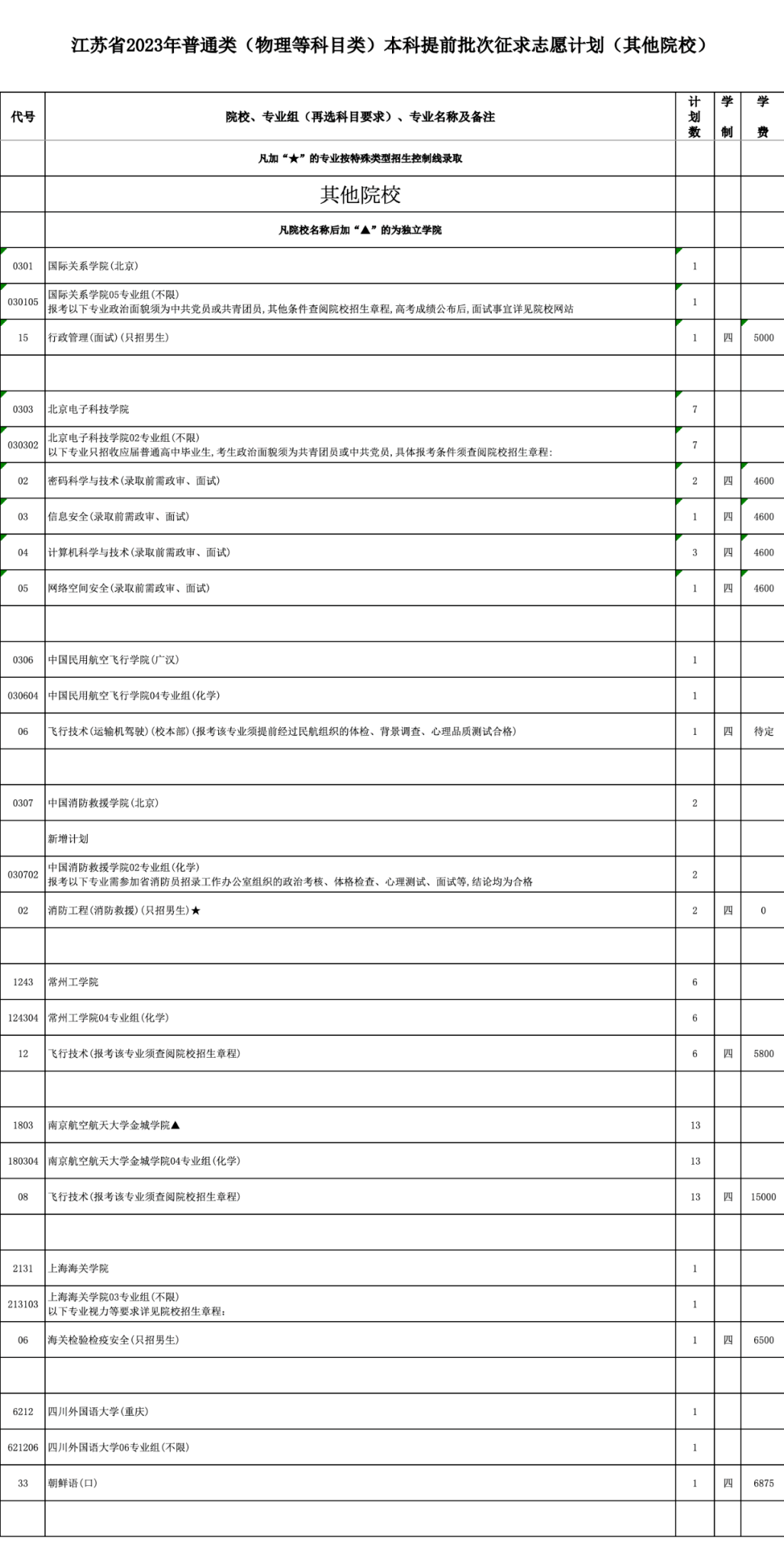 除注明分数要求的院校专业外,凡报考标注“★”的院校专业的考生,历史等科目类总分不得低于527分,物理等科目类总分不得低于512分;报考未标注“★”的院校专业的考生,历史等科目类总分不得低于474分,物理等科目类总分不得低于448分;报考飞行技术专业的考生,须符合民航招飞院校招生条件。同时,考生的选考科目须符合我省和拟报考院校的要求。