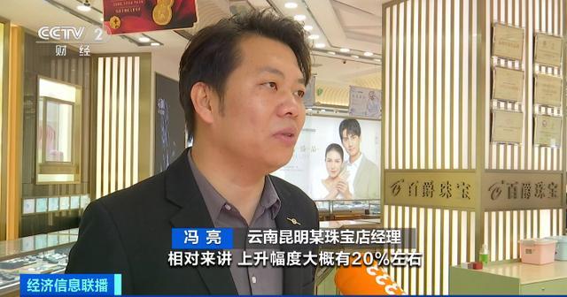 云南昆明某珠宝店经理 冯亮:今年市场比起去年来说,上升幅度大概有20%。