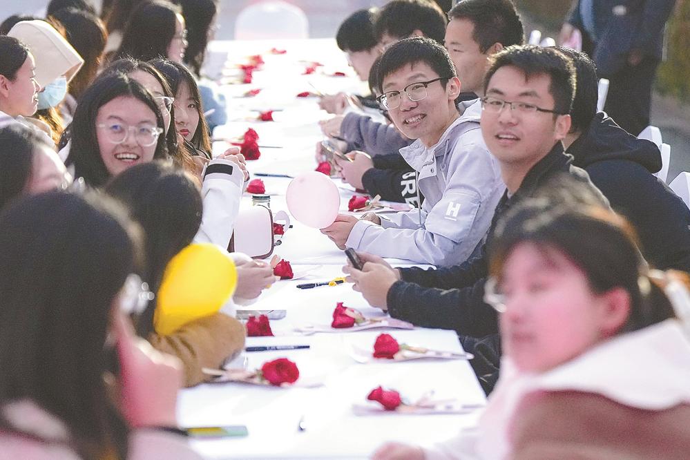 当天下午,在东台西溪旅游文化景区,“一起脱单吧”青年人才相亲会火热进行。主办方联合本次活动浪漫合伙人东台西溪天仙缘景区,共同举办的相亲交友活动吸引了盐城市区100多名单身男女及东台本地100多名单身男女的积极参与。除了下午的相亲活动,晚餐后观看沉浸式实景秀《天仙缘》,更是让青年男女们度过了难忘而又美好的时光。“我们想在特别的日子里传递一份简单的幸福,愿小小的玫瑰让你感受到盐城这座城市的浪漫与温暖。”活动主办方有关负责人介绍,活动期间,东台西溪旅游文化景区除安排在东台鱼汤面馆、草市街、文化园、逅海、犁木街5处全天免费送1111朵玫瑰花外,还举办“一起脱单吧”青年人才相亲会。