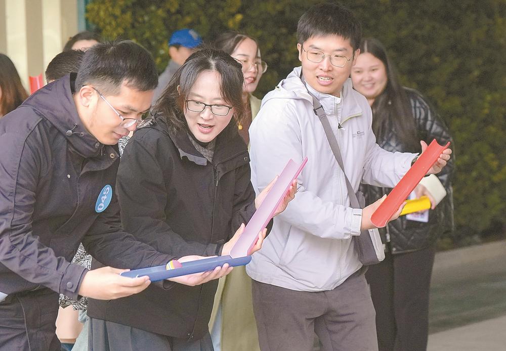 在盐城市博物馆,两对来自淮安的情侣领到玫瑰花后,邀请工作人员为他们拍下合影。“趁着‘双11’,我们计划了两日游,这里是我们到盐城游玩的第一个景点,感觉真不错,仪式感满满。”淮安女孩小王开心地告诉记者,刚刚和男友一起品尝了盐城鸡蛋饼,独特的口感让人难忘。盐城有很多值得游玩的地方,她和男友计划在盐城度过这个周末,把好玩的地方都游个遍。