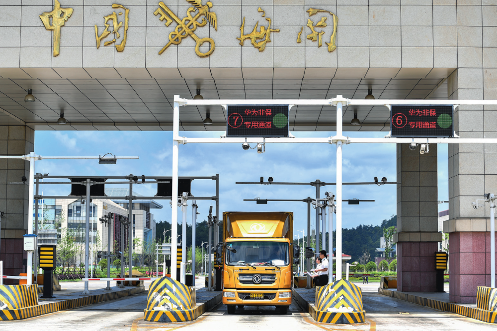 贵阳海关工作人员监管车辆通过海关卡口 贵阳海关供图 在贵州省遵义市中国辣椒城,工人将辣椒装袋(2023 年 6 月 6 日摄)刘续摄 / 本刊