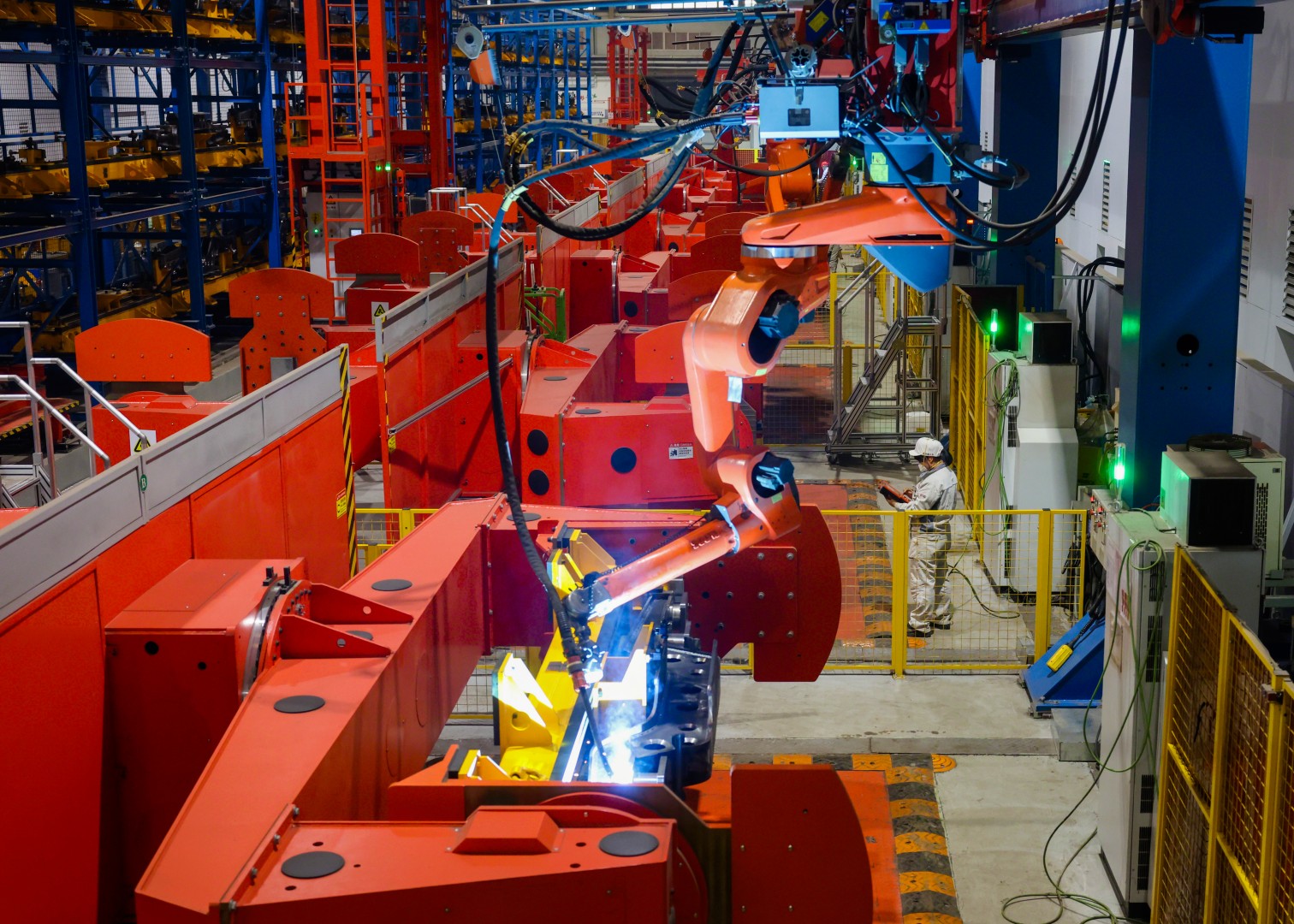 走进亨通集团位于苏州的智能生产车间,智能化场景随处可见:近2万个控制参数有序分布在集中控制界面;车间内每台设备都装有传感器,只需几名员工便能对所有设备进行实时监控和集中控制;机器臂随“手”抓取重达400公斤的光棒,轻松实现人力难为的生产操作。