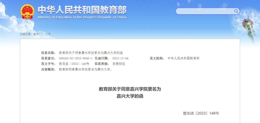 另外,根据教育部官网近日公开消息,同意嘉兴学院更名为嘉兴大学、蚌埠医学院更名为蚌埠医科大学、合肥学院更名为合肥大学、浙江科技学院更名为浙江科技大学。下面来看详情!