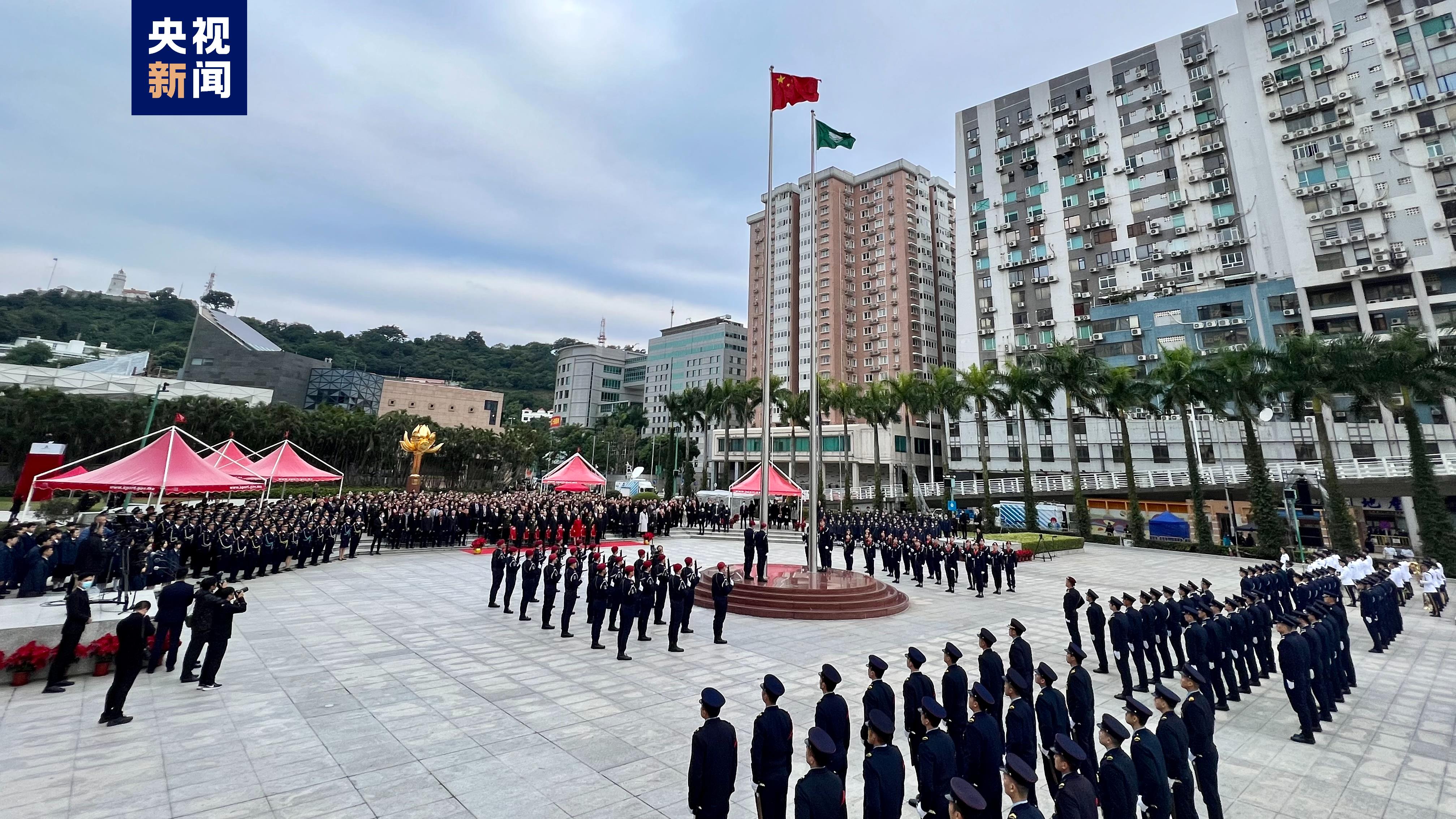 澳门特区政府20日在金莲花广场举行升旗仪式,庆祝澳门回归祖国24周年。