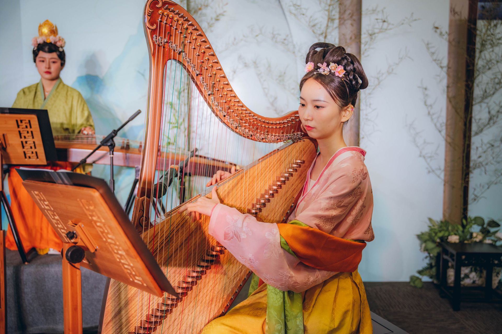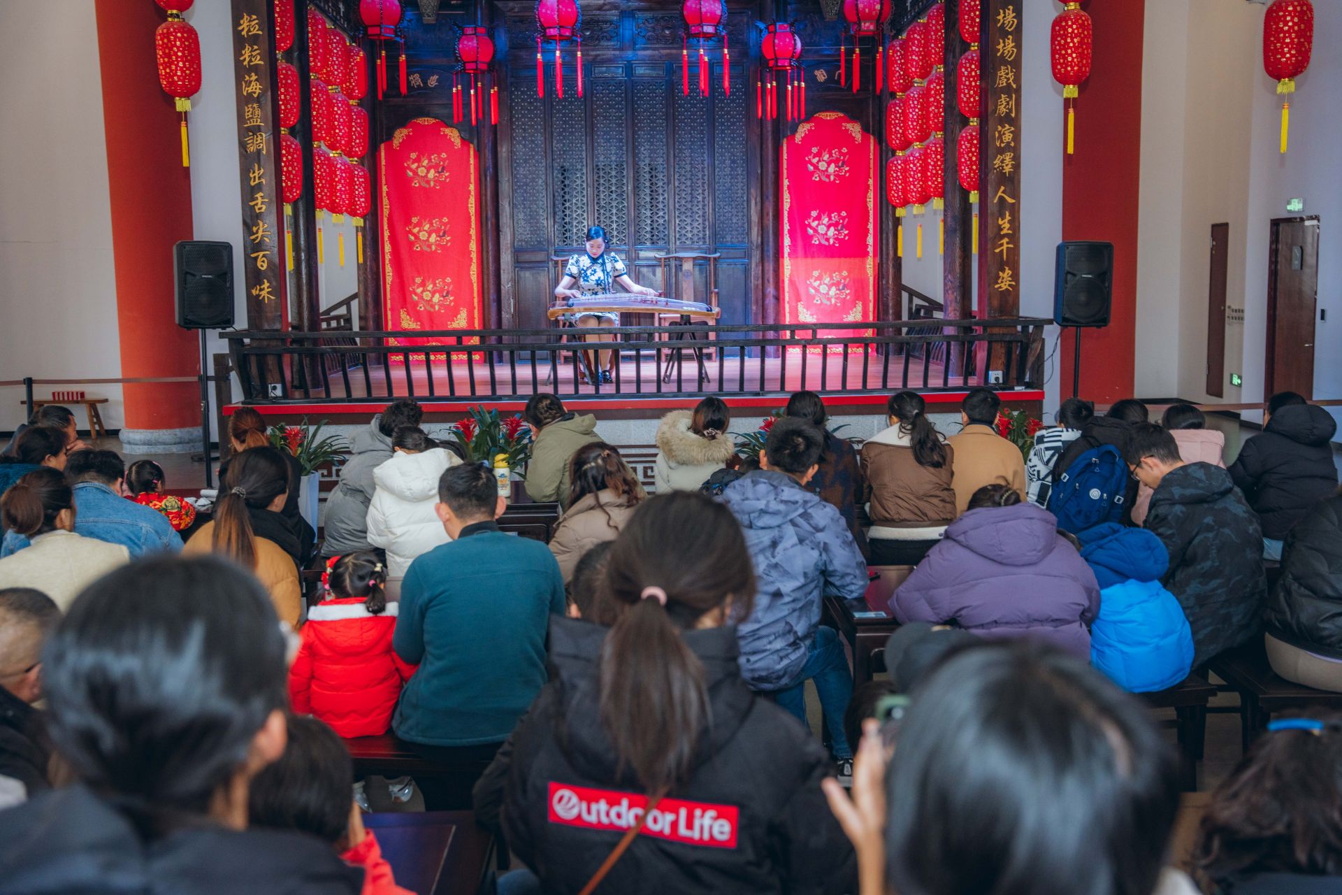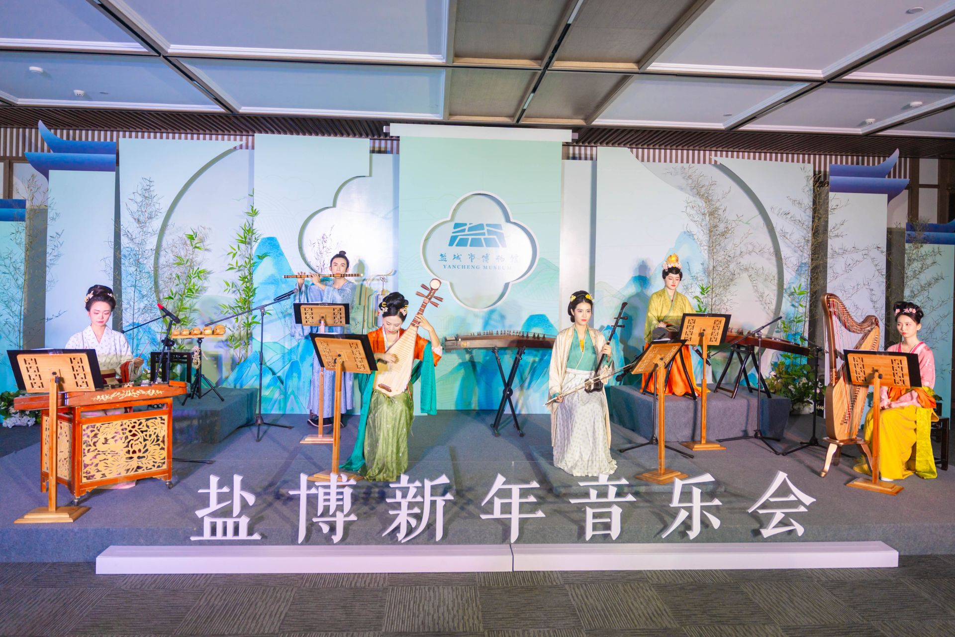 回望千年,展卷入梦。跨年夜盐博推出“锦瑟迎新”音乐会,特邀国内知名的“半塘欢喜”国乐团为带来颇具东方韵味的视听盛宴。以青山翠竹为背景,营造清雅氛围,融合了诗歌、国画、戏曲等文化艺术元素,将民乐、光影、历史、非遗有机融合,打破传统听觉边界,呈现艺术魅力。“悠扬的琴声,婉转的笛声,柔和的阮声,清脆的琵琶,幽雅的古筝,都是跨越历史的述说。”观众们沉浸在音韵的浮岚中,仿佛穿越回宋朝,享受那一场幽雅,感受那一抹宁静,迎接新的一年。