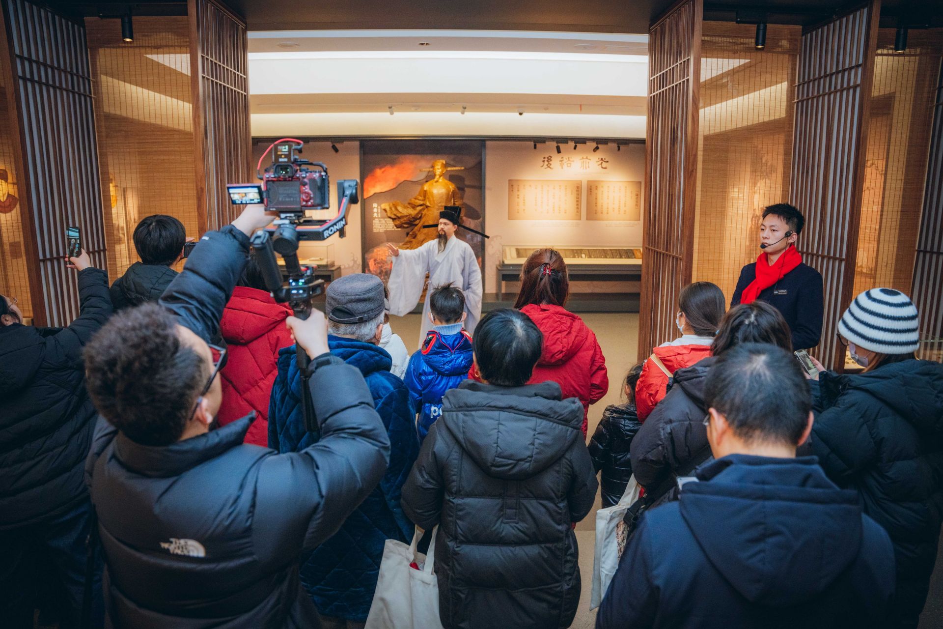 九大关卡,拨开迷雾,解锁剧情,四大情境演艺,穿越千年,走进历史;五大NPC,互动问答,集章打卡……原创“盐小博奇遇记”探秘游,定制趣味剧本,以线上线下创意结合的体验方式,让观众身临其境走入盐城历史故事中,与文物对话,开启奇妙历史文化之旅。“手机扫码跟着H5理解故事线,与NPC互动问答推动剧情,每一个展厅还有小情景剧表演,沉浸感拉满!也让我更加了解了盐城的历史。”观众孙先生说,“这个活动太有趣了。”