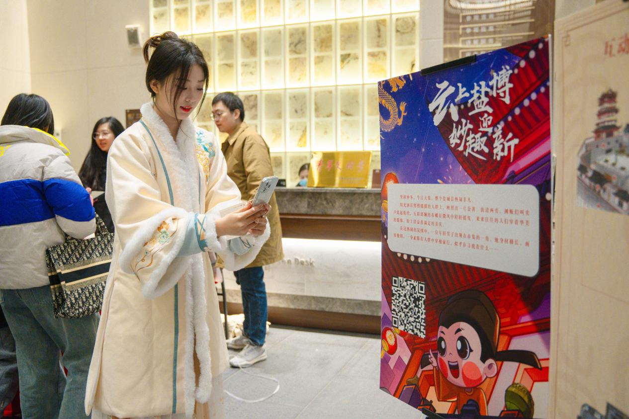 “观众们通过H5云互动相约云端,可以在线预约、在线许愿、在线集福,赢取限量新年文创礼品。”市博物馆工作人员表示,“云上盐博”直播活动让近20万观众与盐博相约云端,触摸历史、聆听国乐,虽未亲至,却临其境。此外,数字人“MR.盐”还与观众们一起在云端岁末倒计时,共同点亮2024。