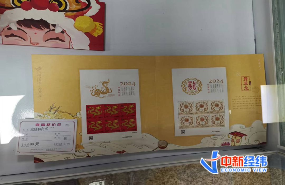 中新经纬在西城区另一家以集邮业务为主的邮政网点看到,许多大爷大妈正排队取出提前预订的邮票。当中新经纬以消费者身份向工作人员询问是否还有剩余的邮票,工作人员表示,目前柜台仅剩邮品和邮册两种产品。其中“龙娃讲民俗”包含小版邮票,但因为是邮品,价格也会较零售邮票贵一些,官方售价98元;另一个包含大版票和小版票的邮册,官方售价为690元。