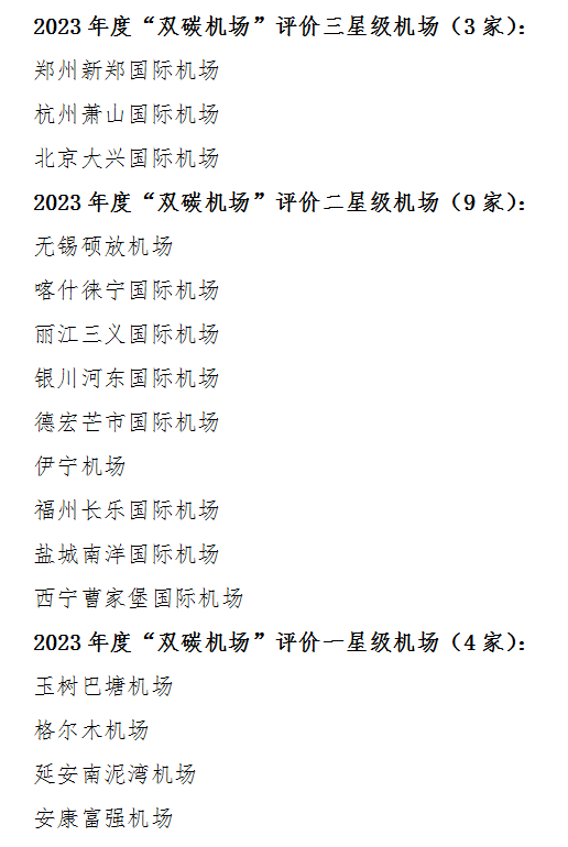 根据中国民用机场协会当日发布的2023年度“双碳机场”评价结果,郑州新郑国际机场、杭州萧山国际机场、北京大兴国际机场等16家机场成为2023年度“双碳机场”。至此,我国已有35家“双碳机场”。
