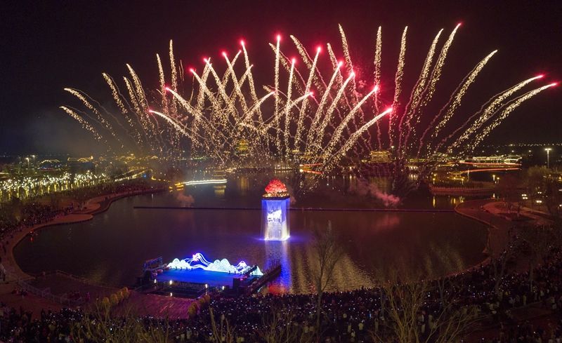1000多架无人机闪烁着五颜六色的光芒,从大纵湖畔缓缓上升,光影变幻中,一条中华巨龙出现在夜幕之中,巍峨壮观……新春佳节,大纵湖旅游度假区开启“不夜城”模式,通过举办“龙跃纵湖”无人机天幕秀、水幕电影秀等一大批形式多样的特色夜场游园活动,为市民游客呈现了一场“声光电”和传统文化完美交融的视听盛宴,燃爆春节狂欢夜。