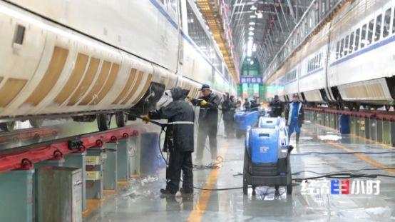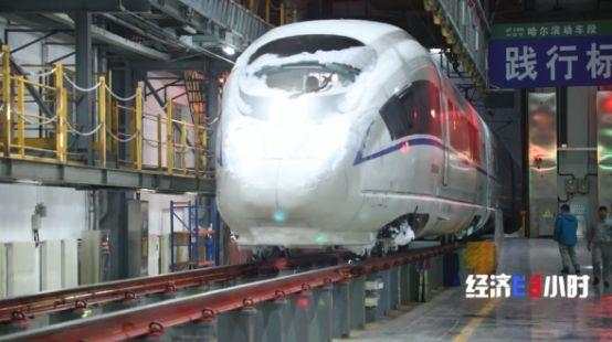 如今,在号称高寒动车组“4S店”的哈尔滨动车段检修库,机械师们用上了高压喷水枪,这是第四代动车组融冰除雪装置,平均每列动车组的融冰除雪时间仅需40分钟。