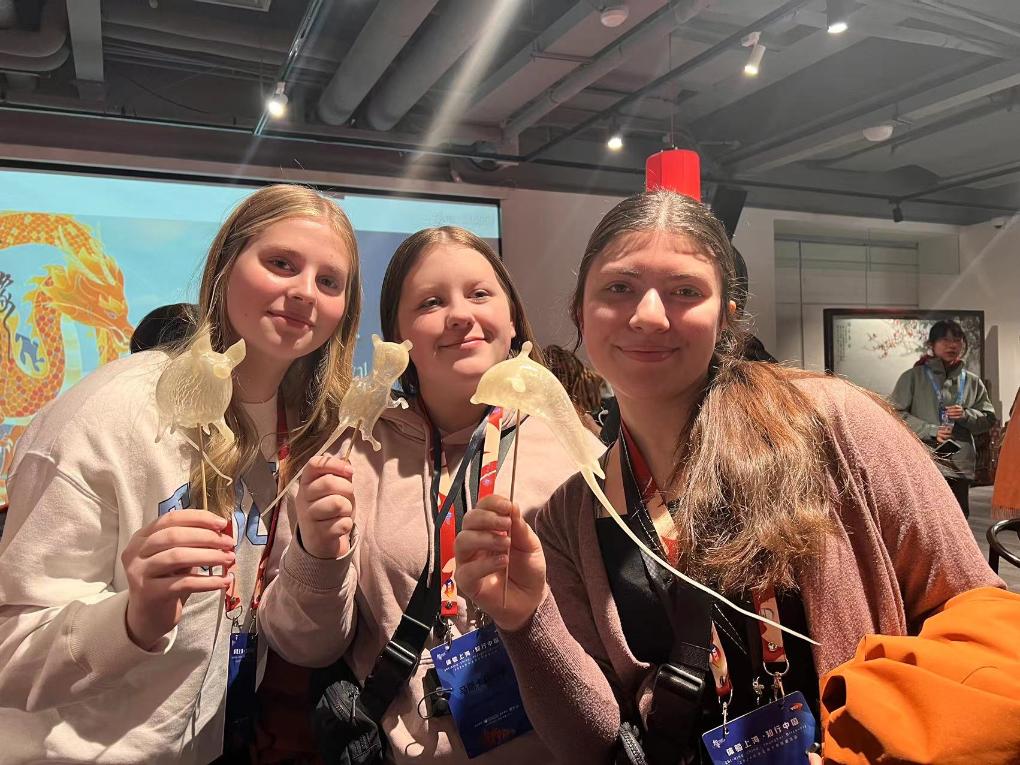 1月下旬,马斯卡廷中学访华代表团学生在上海体验民俗活动。(受访者供图)