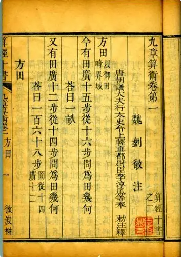 《九章算术》总结了战国、秦、汉时期的数学成就,约成书于东汉之初。刘徽在数学上的主要成就之一,是为《九章算术》作注,书名叫《九章算术注》,是我国最可贵的数学遗产之一。