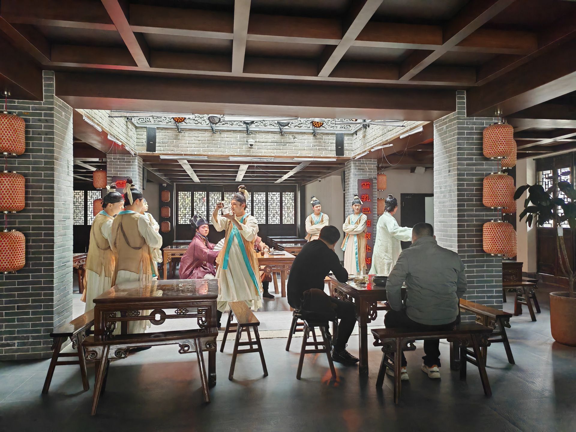 淮剧小镇常驻一百余名淮杂演员,每天坚持为游客上演精彩剧目。游客不仅可以穿行在淮剧演员之中,体验淮剧沉浸式表演,还可以与杂技演员精彩互动,令“一日之寒体验冰冻三尺”,在顶碗等体验中感受杂技艺术的魅力。