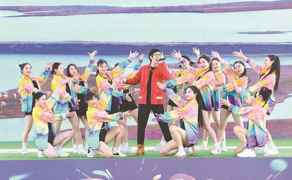 4月9日,歌手在表演说唱节目《宝藏盐城》。当日,“抖IN盐城 精彩无限”挑战赛在大丰荷兰花海景区正式启动。此次活动旨在进一步放大我市世遗品牌效应,传播盐城声音,讲好盐城故事,提升盐城对外城市形象与知名度。 记者 杨毅 摄
