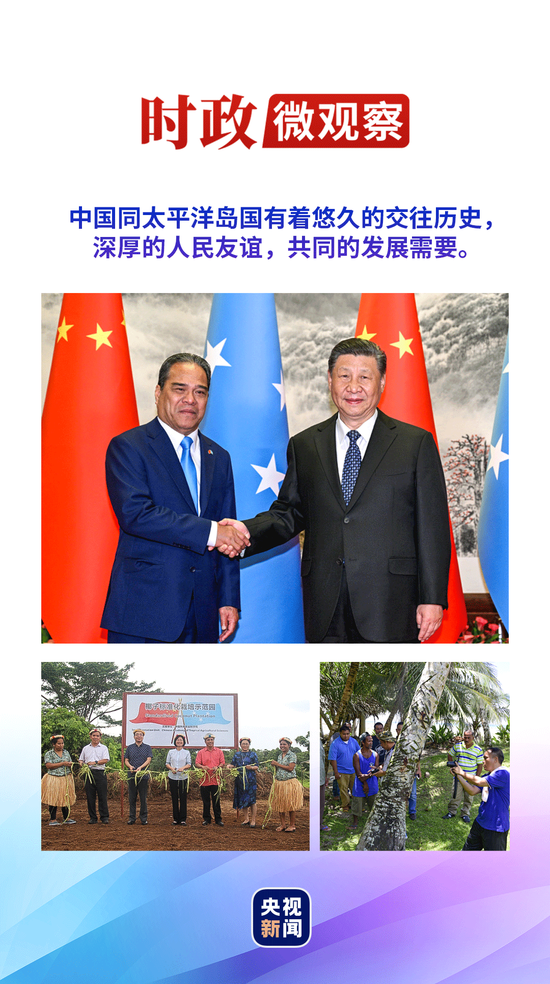 “中方愿继续为岛国发展提供力所能及的支持,开展三方或多方合作。”习近平主席提及,中国地方“送医上岛”、“送戏下海”等项目深受密联邦民众欢迎,双方可以开展更多类似项目。