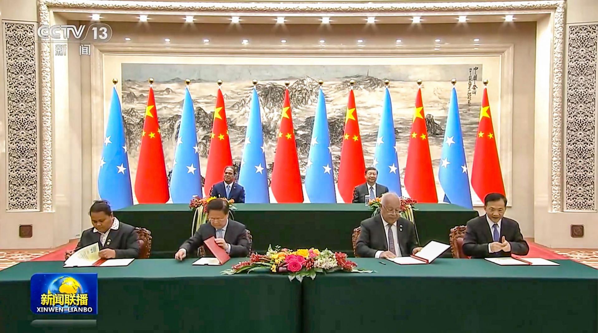4月9日,北京人民大会堂,习近平主席会见了首次来访的密克罗尼西亚联邦总统西米纳。