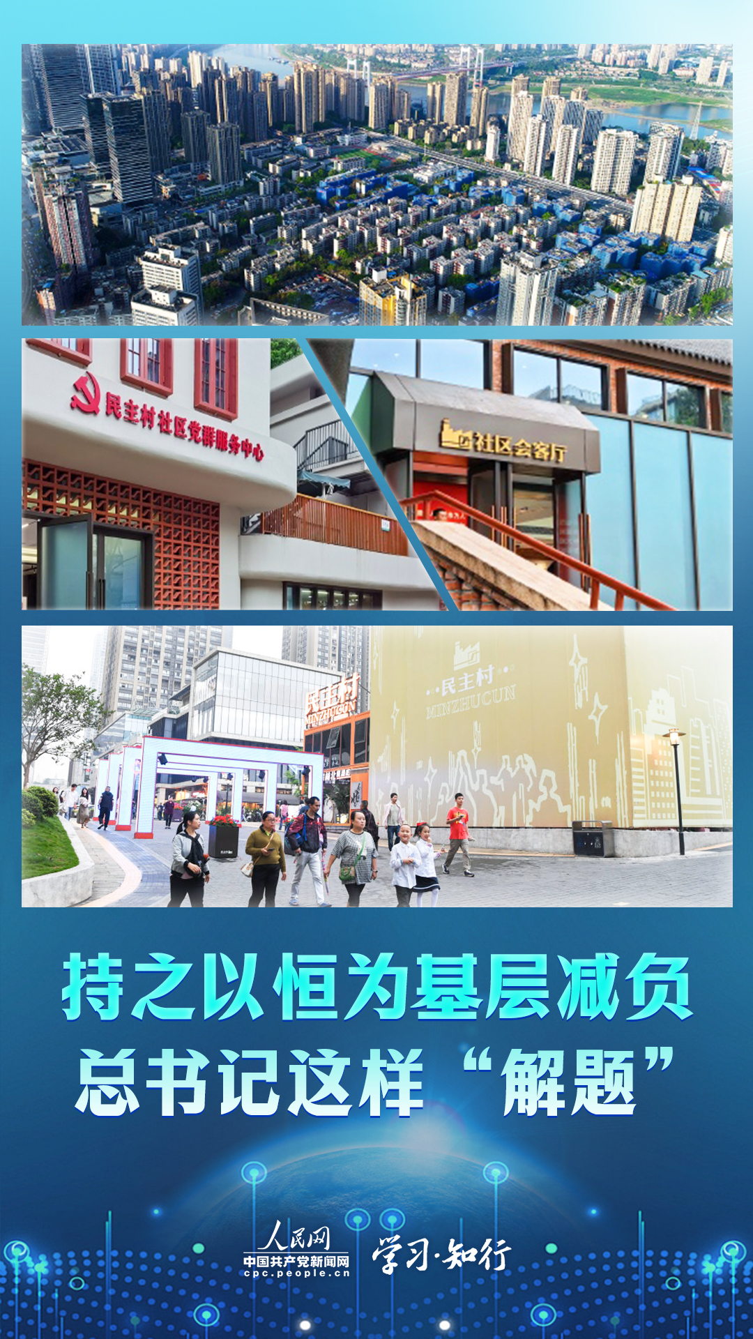 2024年4月22日下午,正在重庆考察的习近平总书记来到九龙坡区谢家湾街道民主村社区,走进社区党群服务中心,向社区干部询问这里都开展哪些便民服务、社区干部待遇怎么样、平时工作忙不忙等,详细了解近年来社区减负效果。