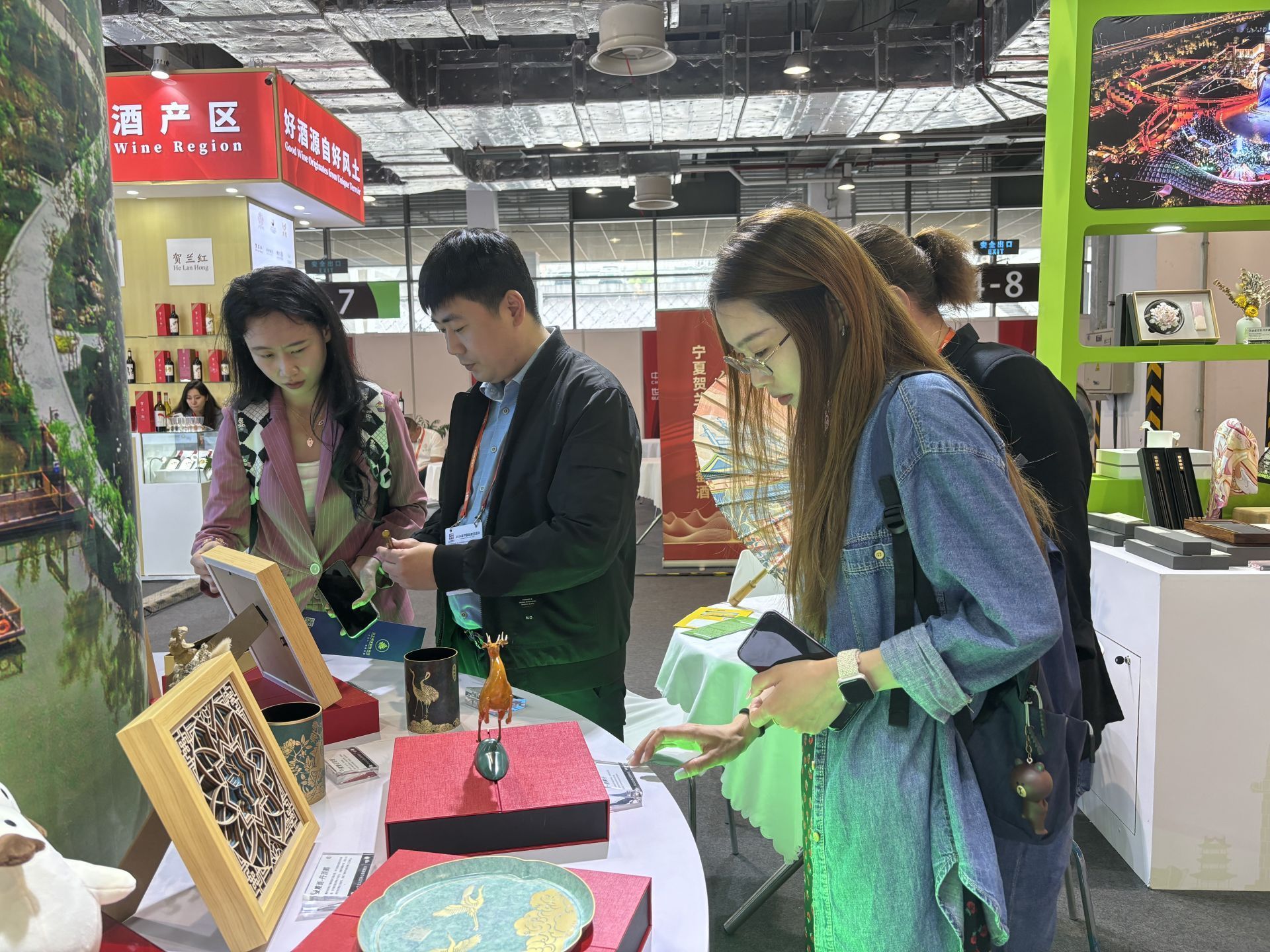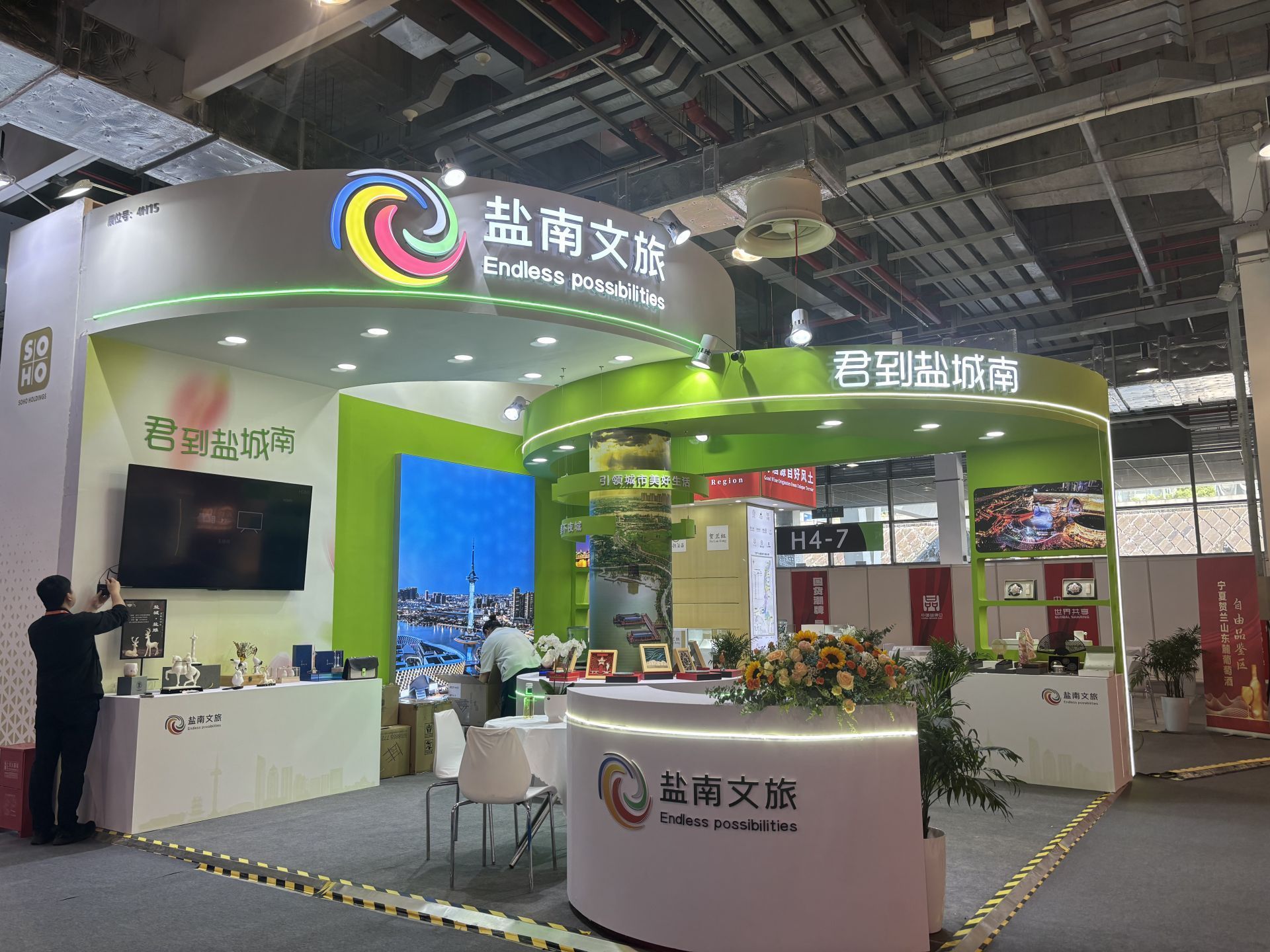 盐南文旅发展有限公司重点打造的“君到盐城南”品牌受邀独立参展,携珠溪有礼、非遗皮雕、盐雕等文创产品亮相。展台经过精心设计,融入盐城地标建筑和文化元素,引来现场观众参观打卡。
