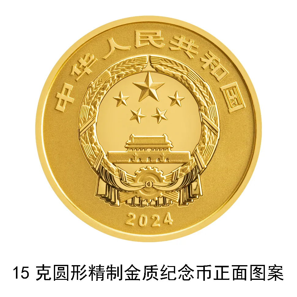15克圆形金质纪念币为精制币,含纯金15克,直径27毫米,面额200元,成色99.9%,最大发行量5000枚。