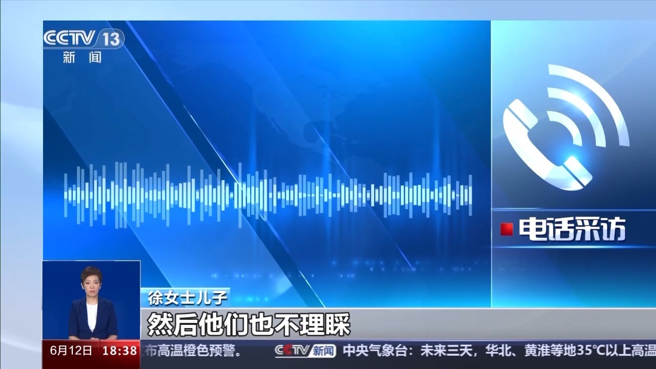 徐女士儿子:当时就想着,我们住院了也花费了不少钱,就是希望跟他们私了。你们出个医疗费,我们也不需要你们赔什么东西,然后他们也不理睬。