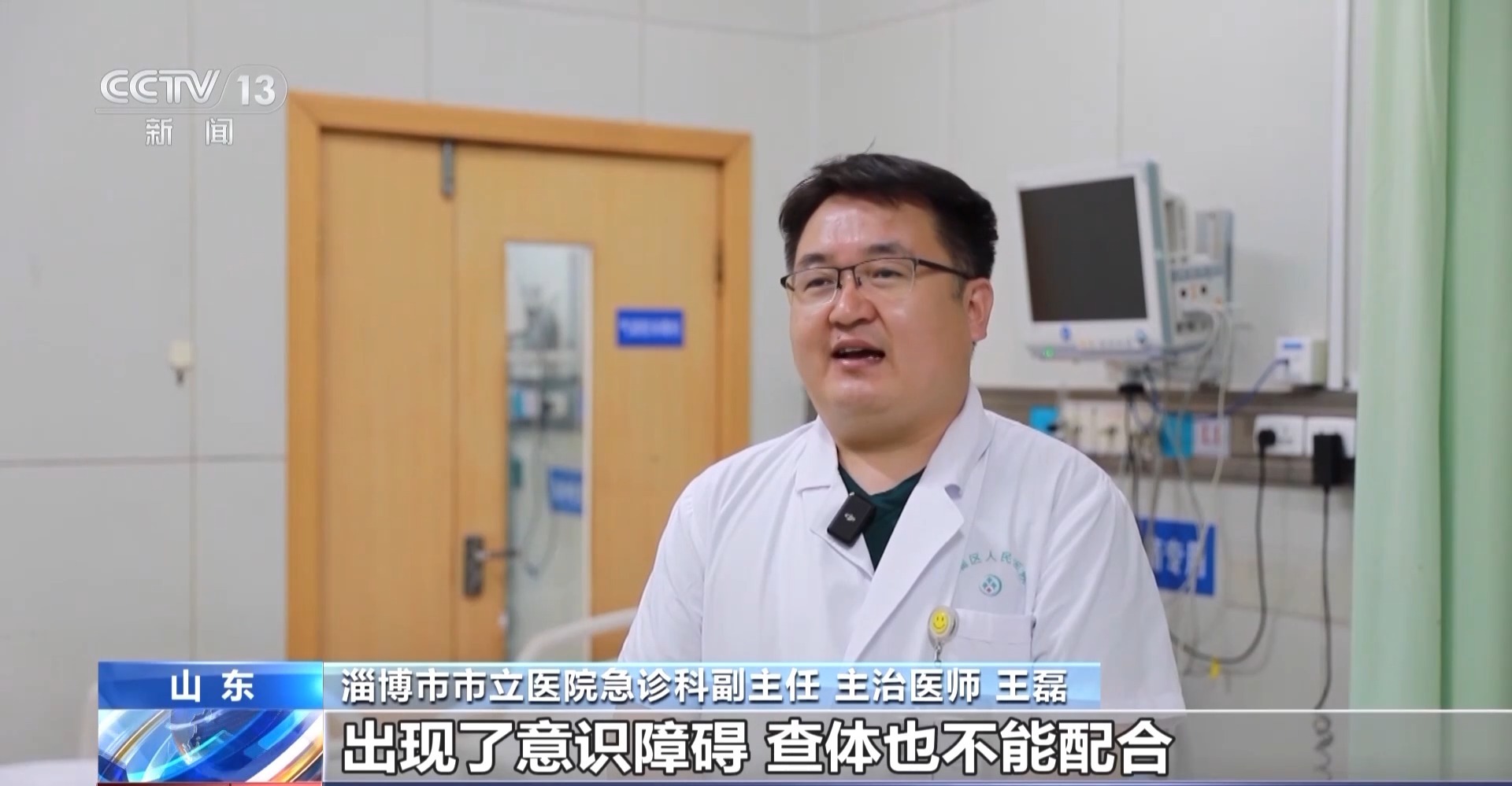 山东淄博市市立医院急诊科副主任 主治医师 王磊:这位病人当时来的时候,出现了意识障碍,查体也不能配合,体温在40.5℃。皮肤表面干燥无汗,肝功、肾功都出现了问题,肝损害,肌酐升高。