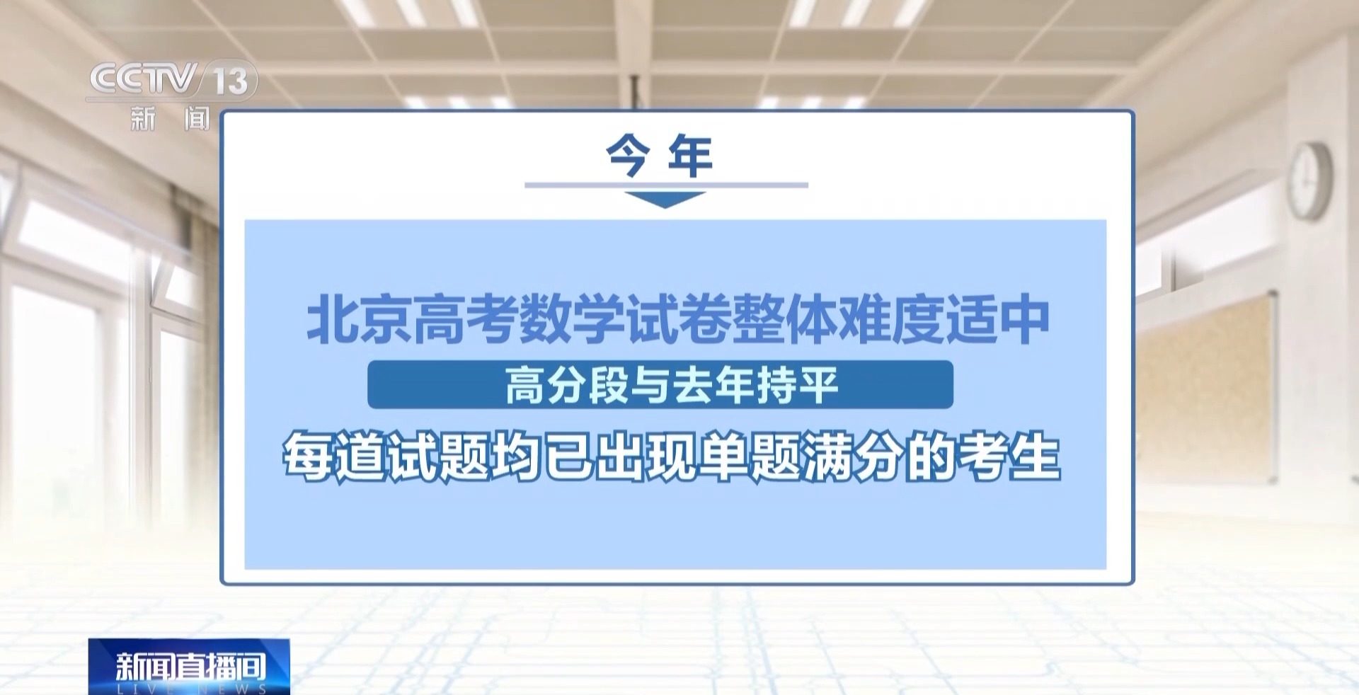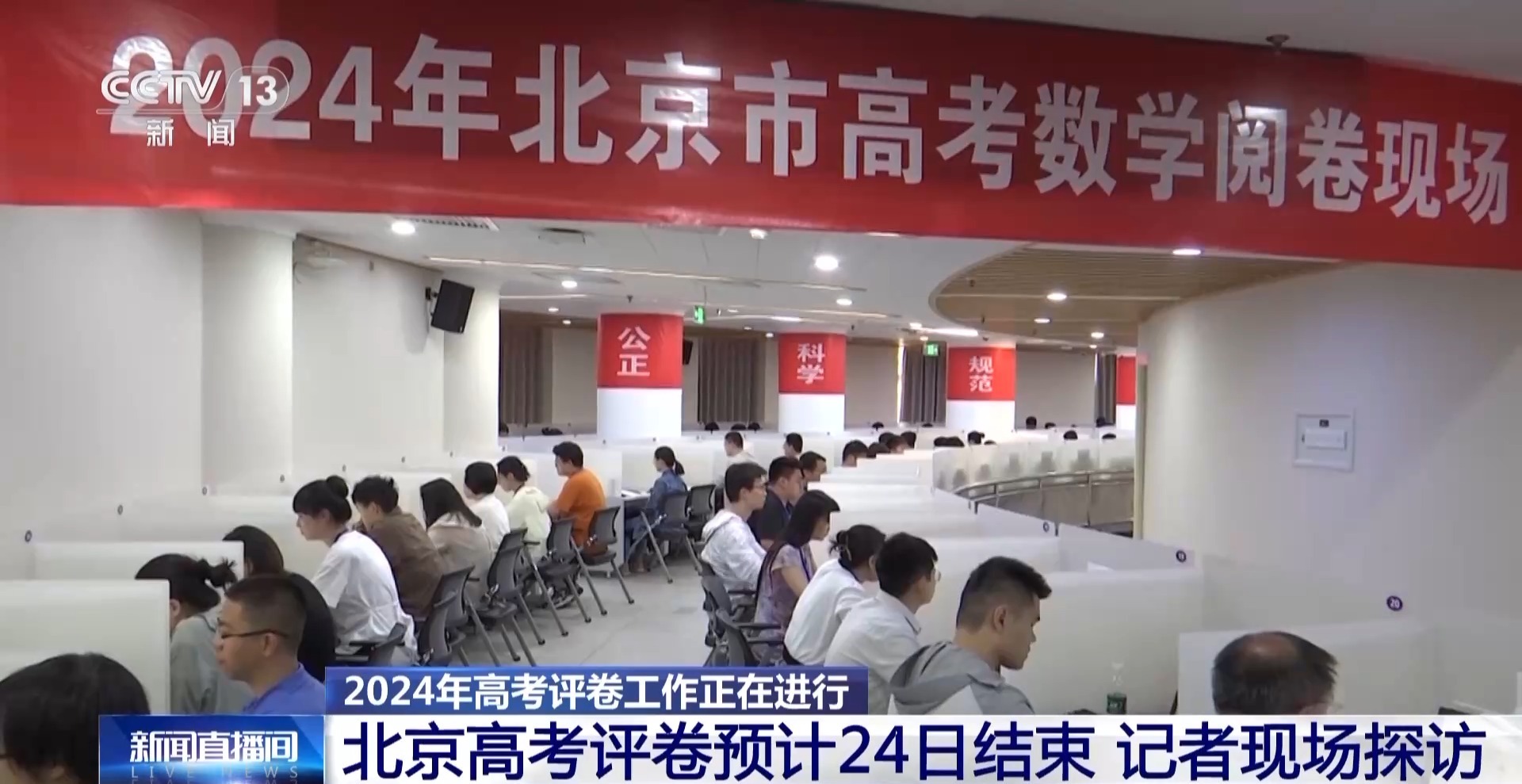 总台央视记者 韩冰:在现场,我们也了解到,今年,北京市有超过1500名教师参与高考评卷。评卷专家每天将对评卷的质量进行一定比例的抽检,对经过三评或者四评的仲裁卷全部进行复查。确保每份答卷的评判科学客观、公平公正。