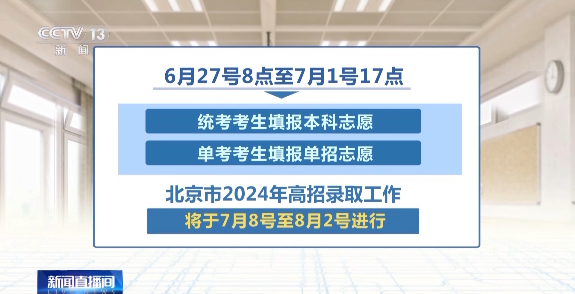 2024年北京市高考成绩将于6月25日中午前发布。同时,将发布各批次录取最低控制分数线和北京市考生分数分布表。6月27日8点至7月1日17点,统考考生填报本科志愿,单考考生填报单招志愿。北京市2024年高招录取工作将于7月8日至8月2日进行。
